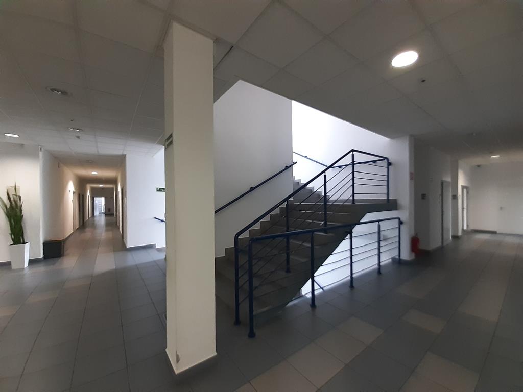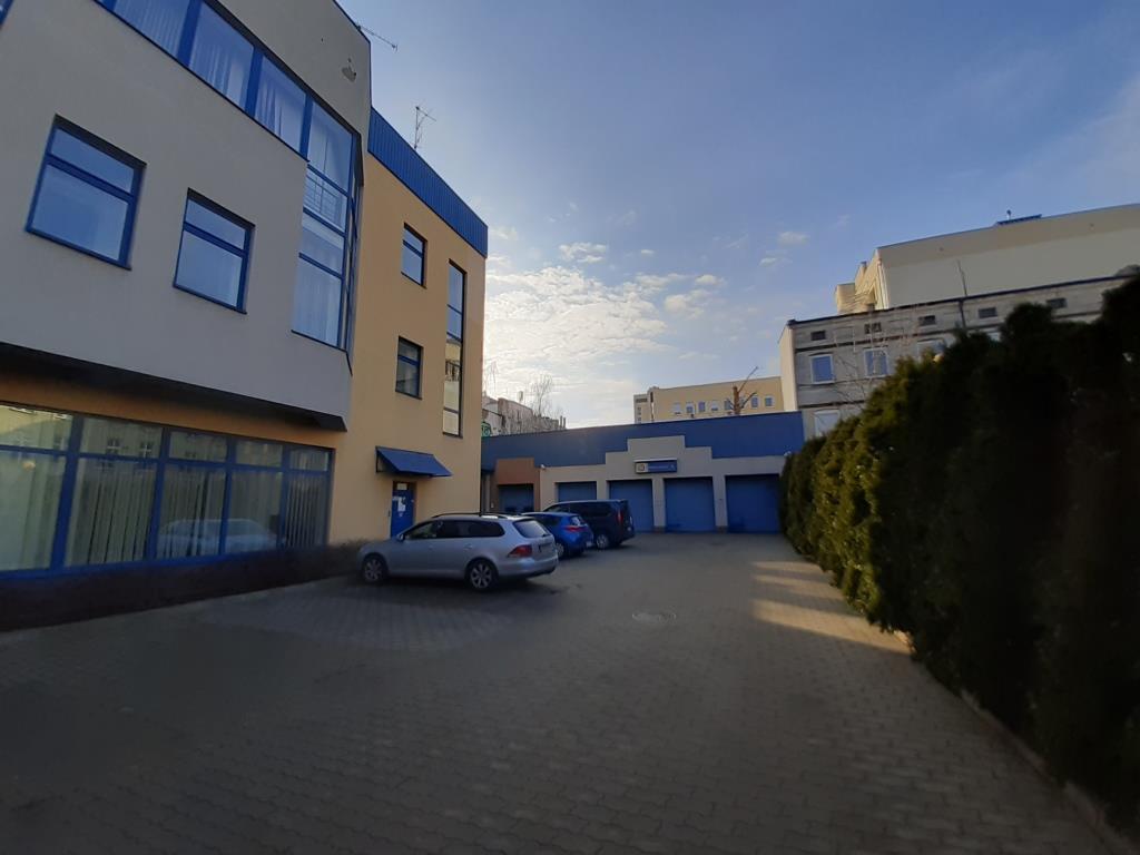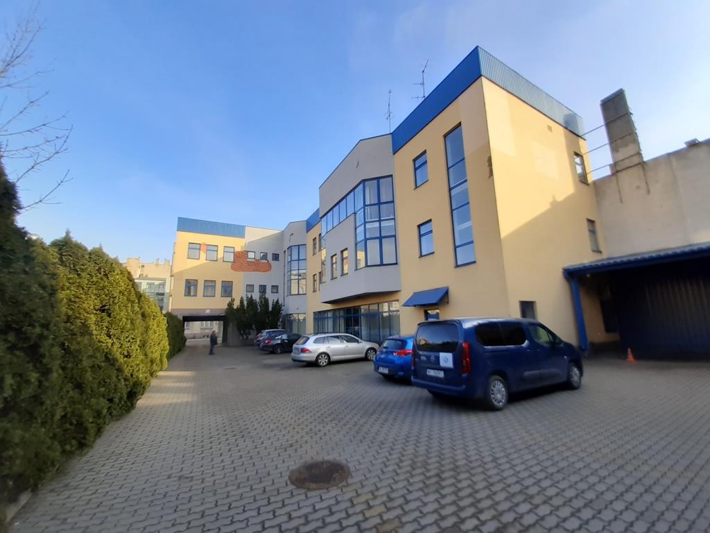 1. Biurowo-usługowy: 3-kondygnacyjny, niepodpiwniczony, wybudowany w 1997 r., o powierzchni użytkowej 2.031,47 mkw. Budynek wyposażony jest w instalacje: wodno-kanalizacyjną, elektryczną, C.O., wentylacyjną, klimatyzacyjną, przeciwpożarową i odgromową. Stan techniczny oceniono jako przeciętny – widoczne są ubytki elewacji, uszkodzenia płytek, korozja obróbek blacharskich.